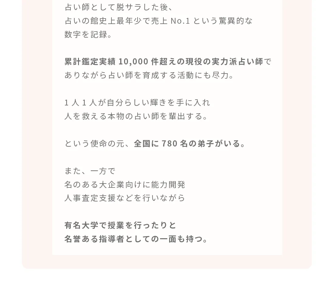 セーラ先生の講座は教えて終わりではなく、お仕事にしたい方のサポートもあるので時給13,200円の占い師としてデビューも出来ました。