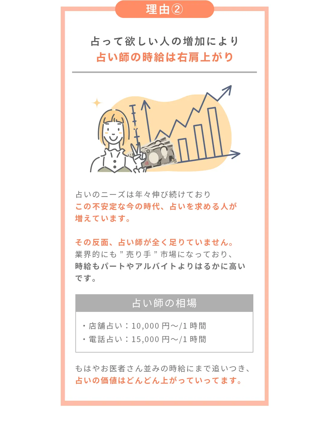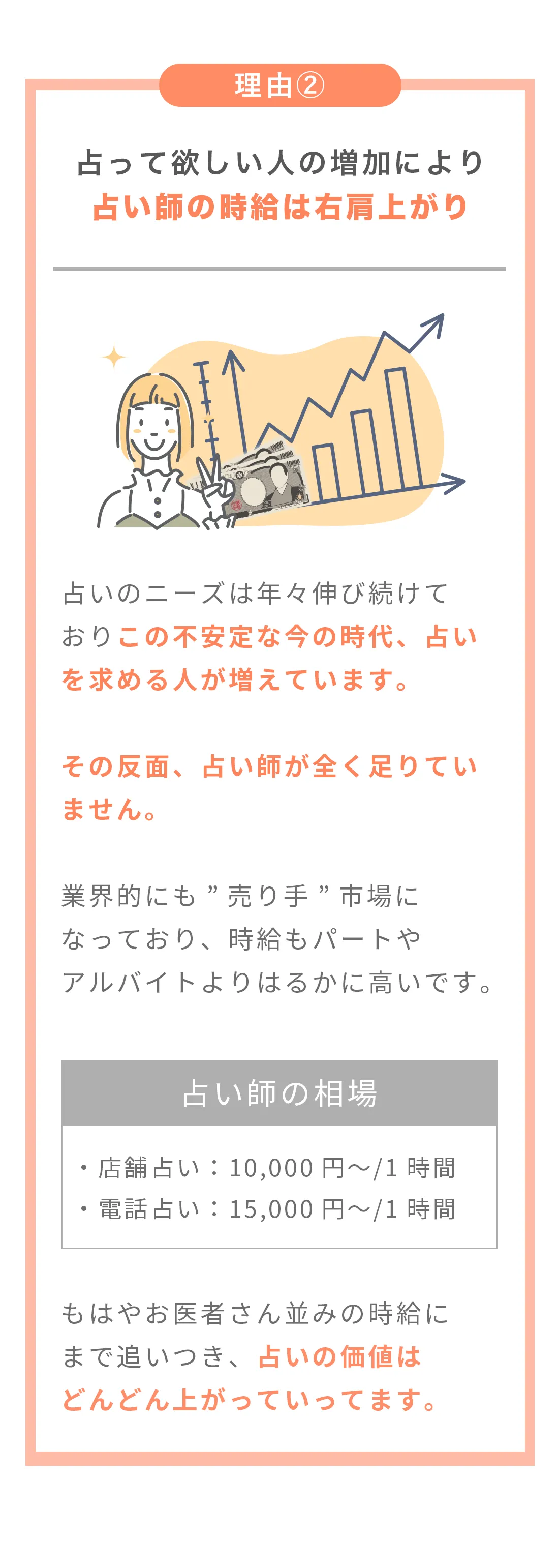 セーラ先生の講座は教えて終わりではなく、お仕事にしたい方のサポートもあるので時給13,200円の占い師としてデビューも出来ました。