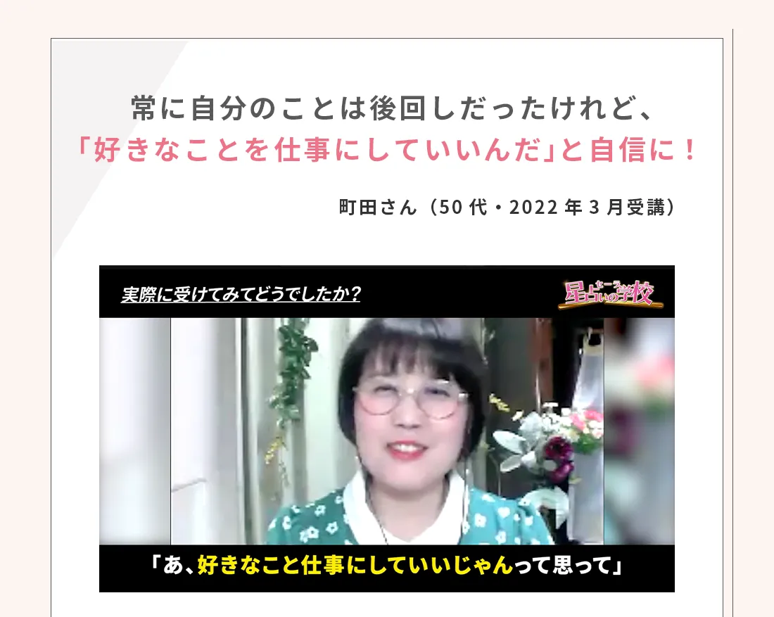 星よみはとても覚えやすく、1日20分の動画を見ながら自分のことや家族のことを占えるようになりました。